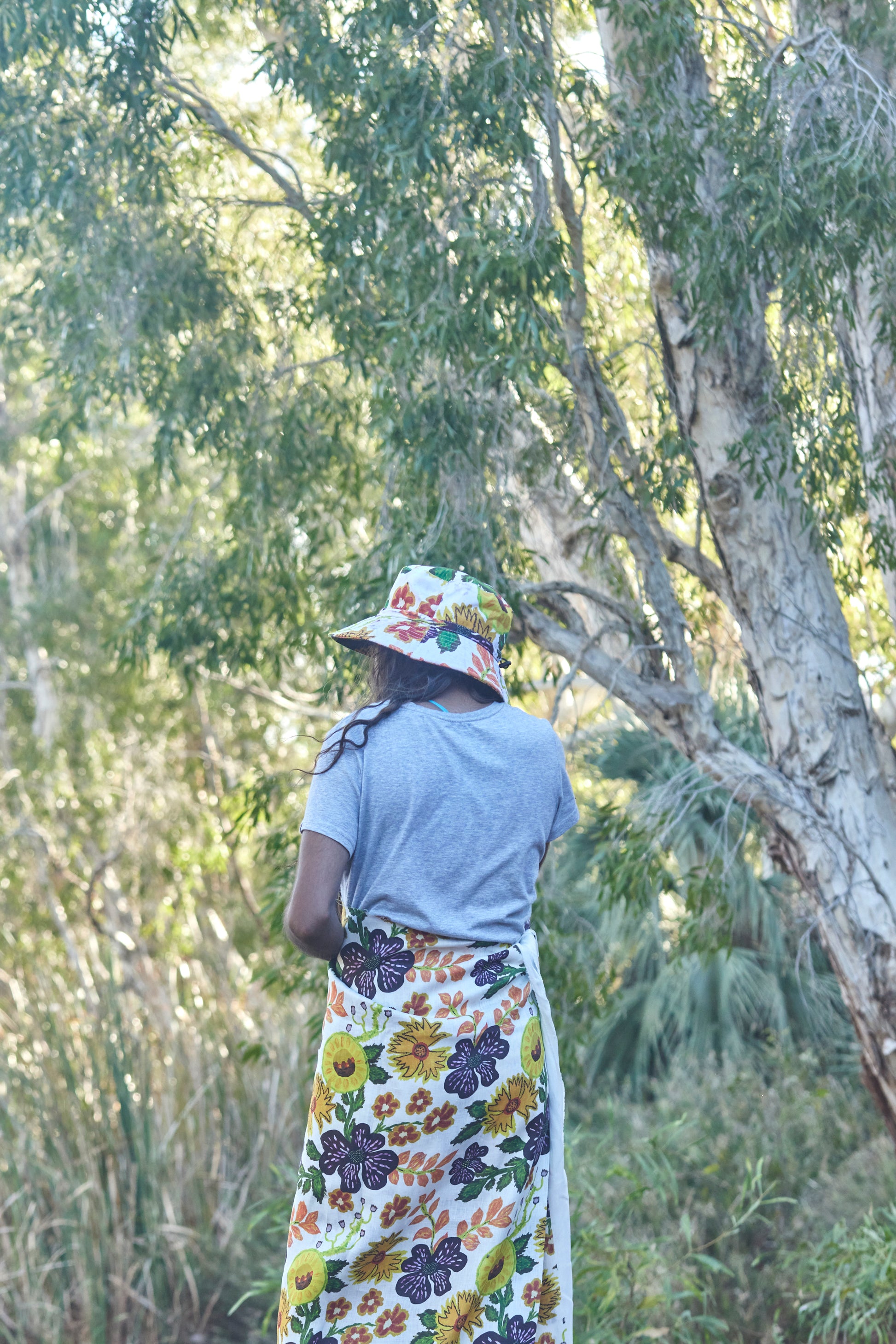 Based on an original artwork by respected elder and Juluwarlu artist, Mrs Read called Native Flowers and Fruits. Digitally printed in China onto 100% Linen (the very soft and floaty type). Fabric width is 135cm (printed area). Cut and sold at 2m giving you enough fabric to create your own beautiful outfit or Pilbara inspired homewares.