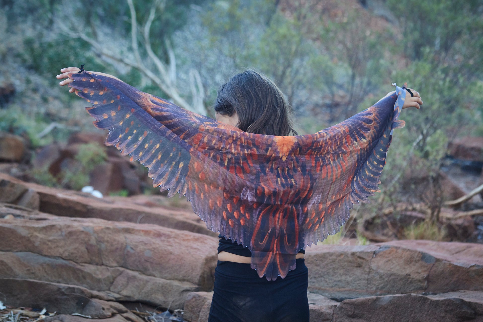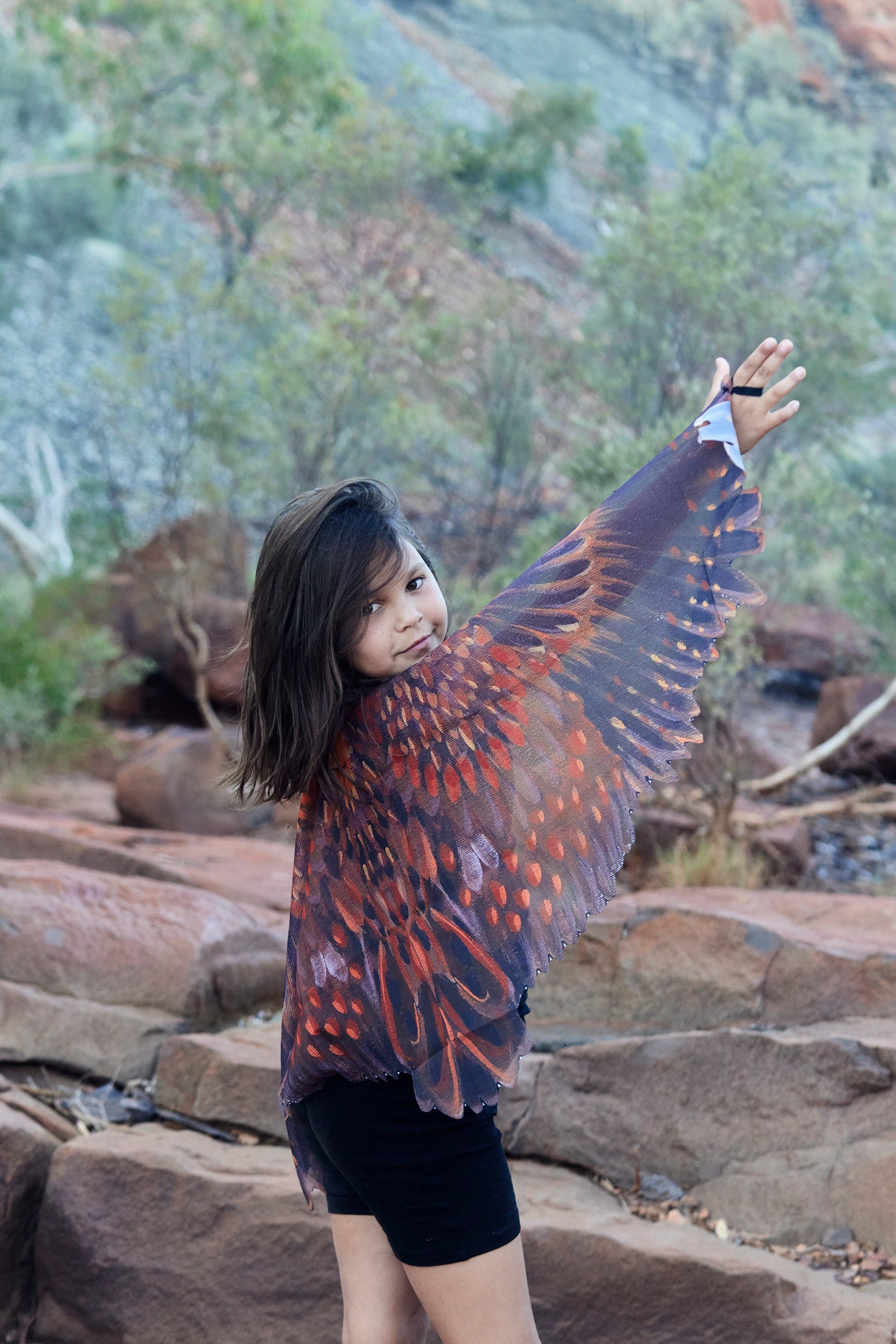 Elevate your child's imaginative play with our enchanting wings! Perfect as a standalone accessory or paired with our captivating graphic novel, "When the World Was Soft," these wings invite children to immerse themselves in Yindjibarndi Creation Stories where the birds play a vital role. As Yindjibarndi people there are laws and lessons we learn from the animals on our country and from the creation times.