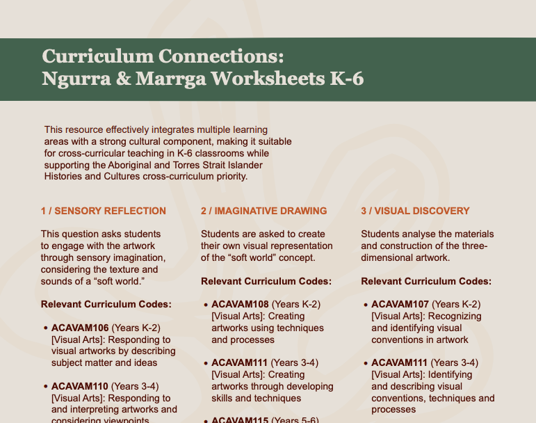 Bring the powerful stories of the Mayalarri exhibition into your classroom — or enhance your onsite visit with engaging, curriculum-aligned activities designed for students across Years K–6 and 7–10.