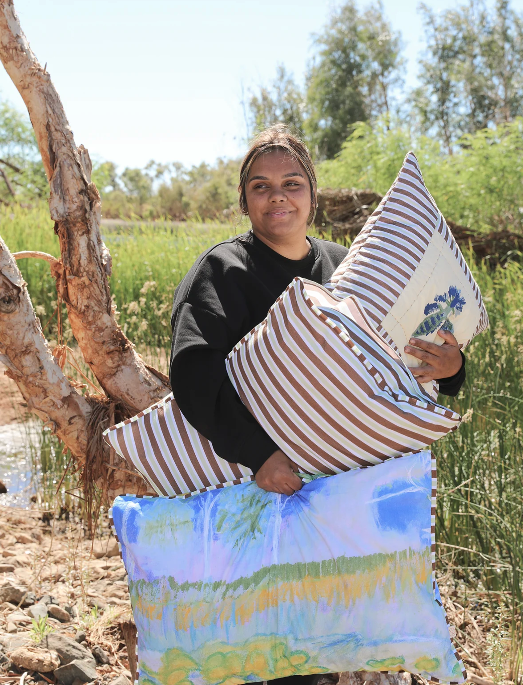 Nancybird has collaborated with Juluwarlu Art Group alongside Wendy Hubert, who is a respected Yindjibarndi elder, cultural custodian, linguist and artist.