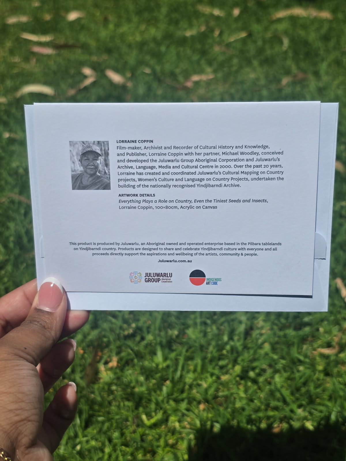 Beautiful gift cards featuring original Juluwarlu artworks. Each card is blank inside for your personal message and comes with a matching envelope, presented in protective packaging.