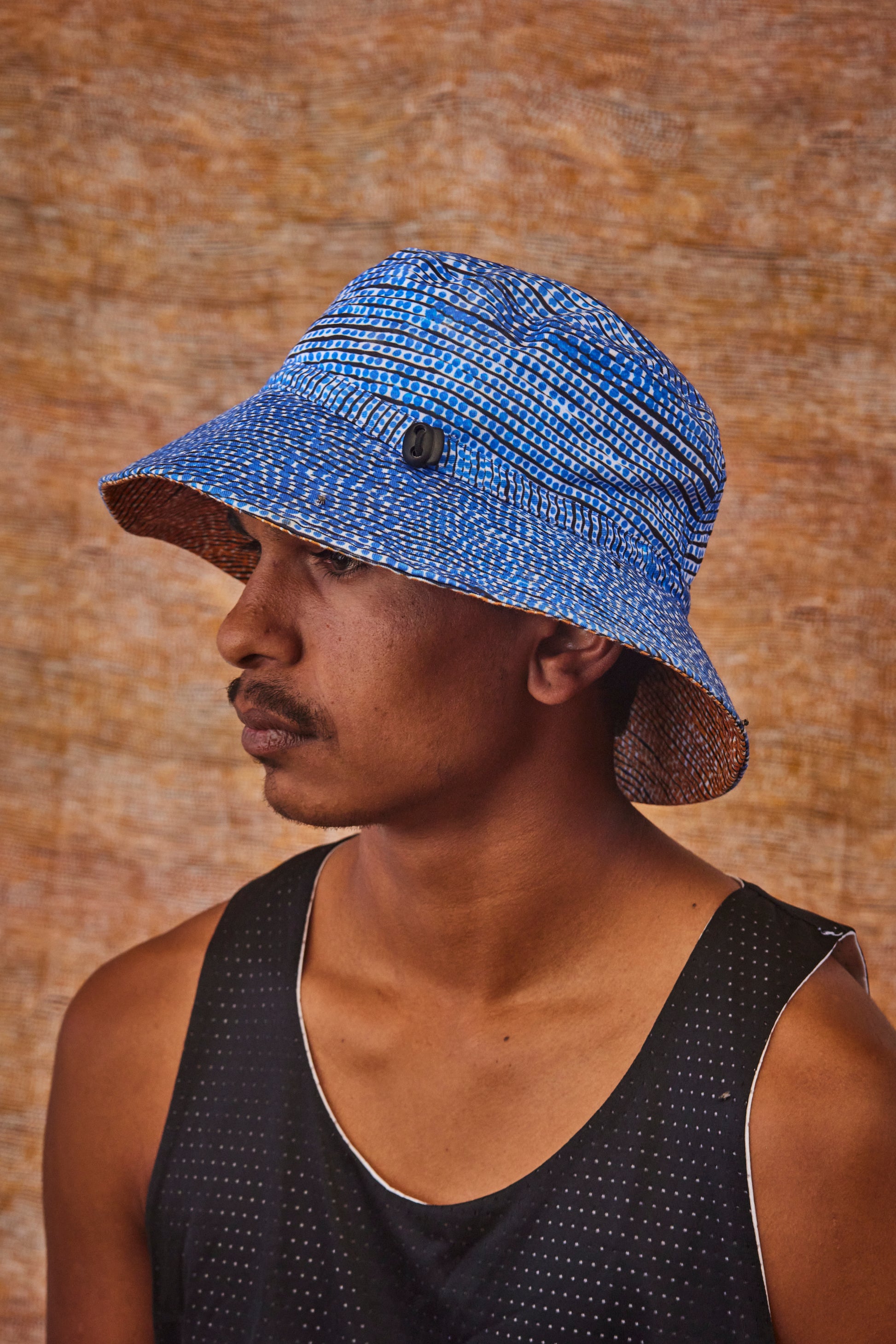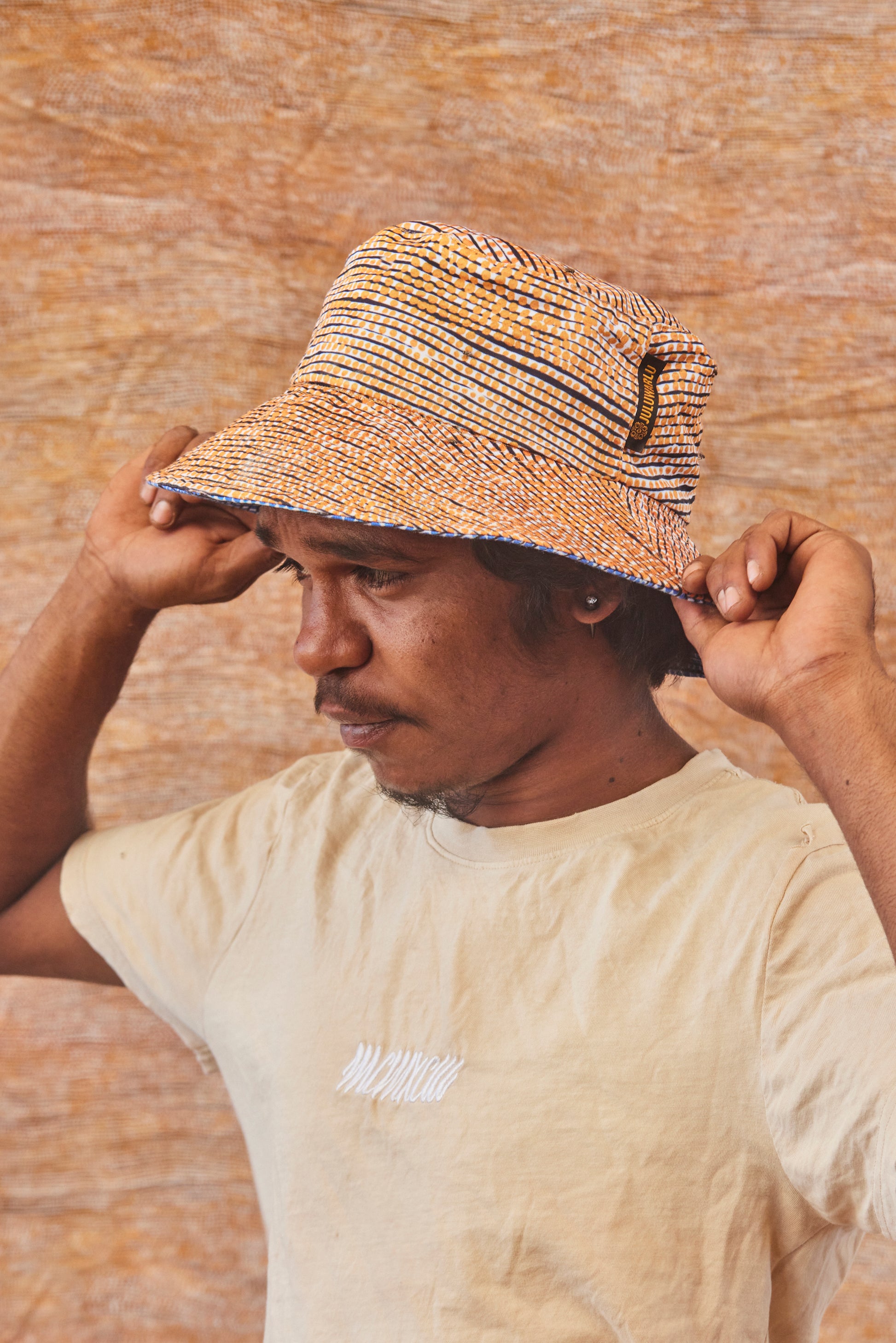 Introducing our versatile and stylish reversible bucket hats, right in time for summer! These hats showcase unique artwork by Juluwarlu Artists. With their wide brim and soft, comfortable design, these bucket hats are suitable for wearers of all ages, from young children to adults.