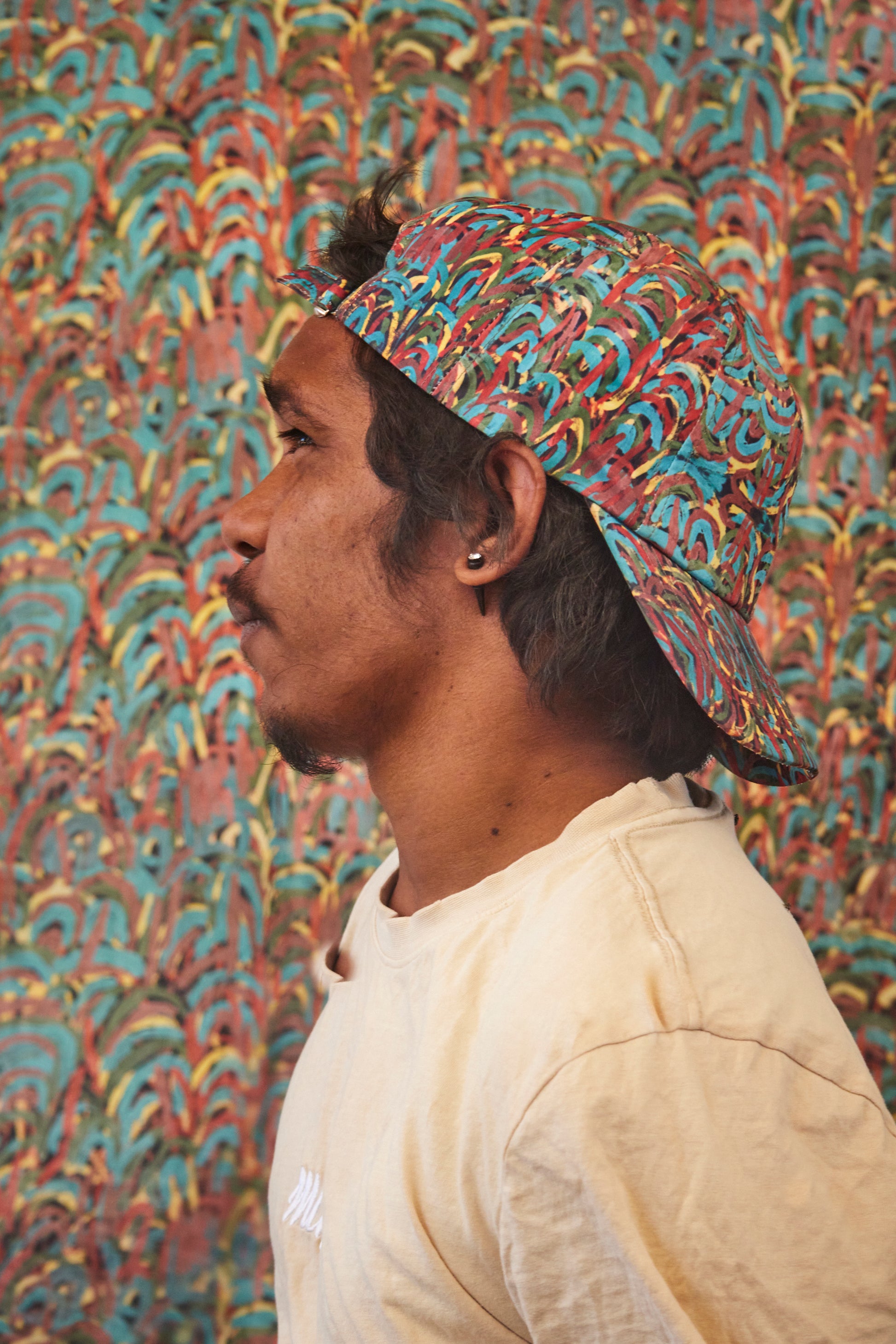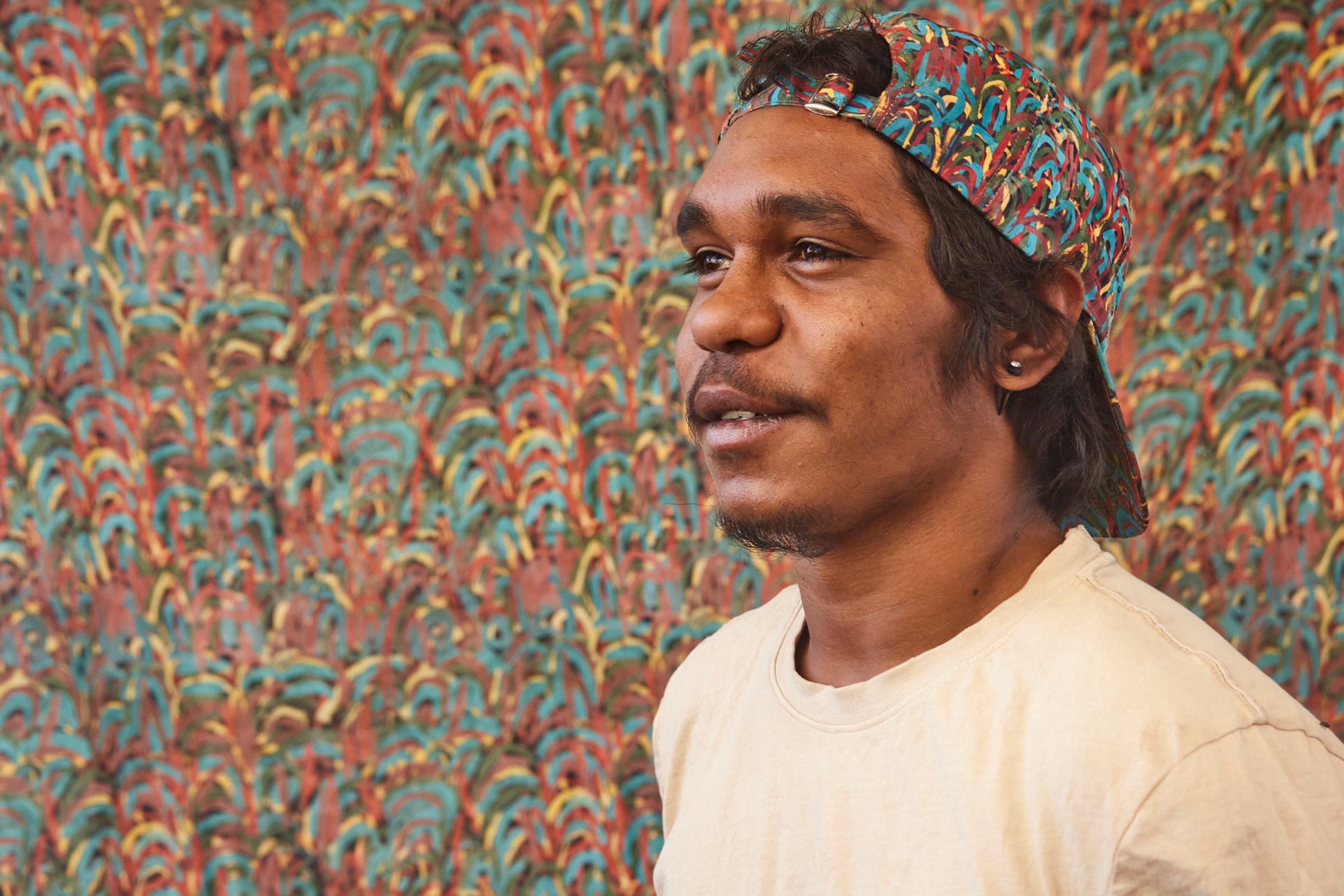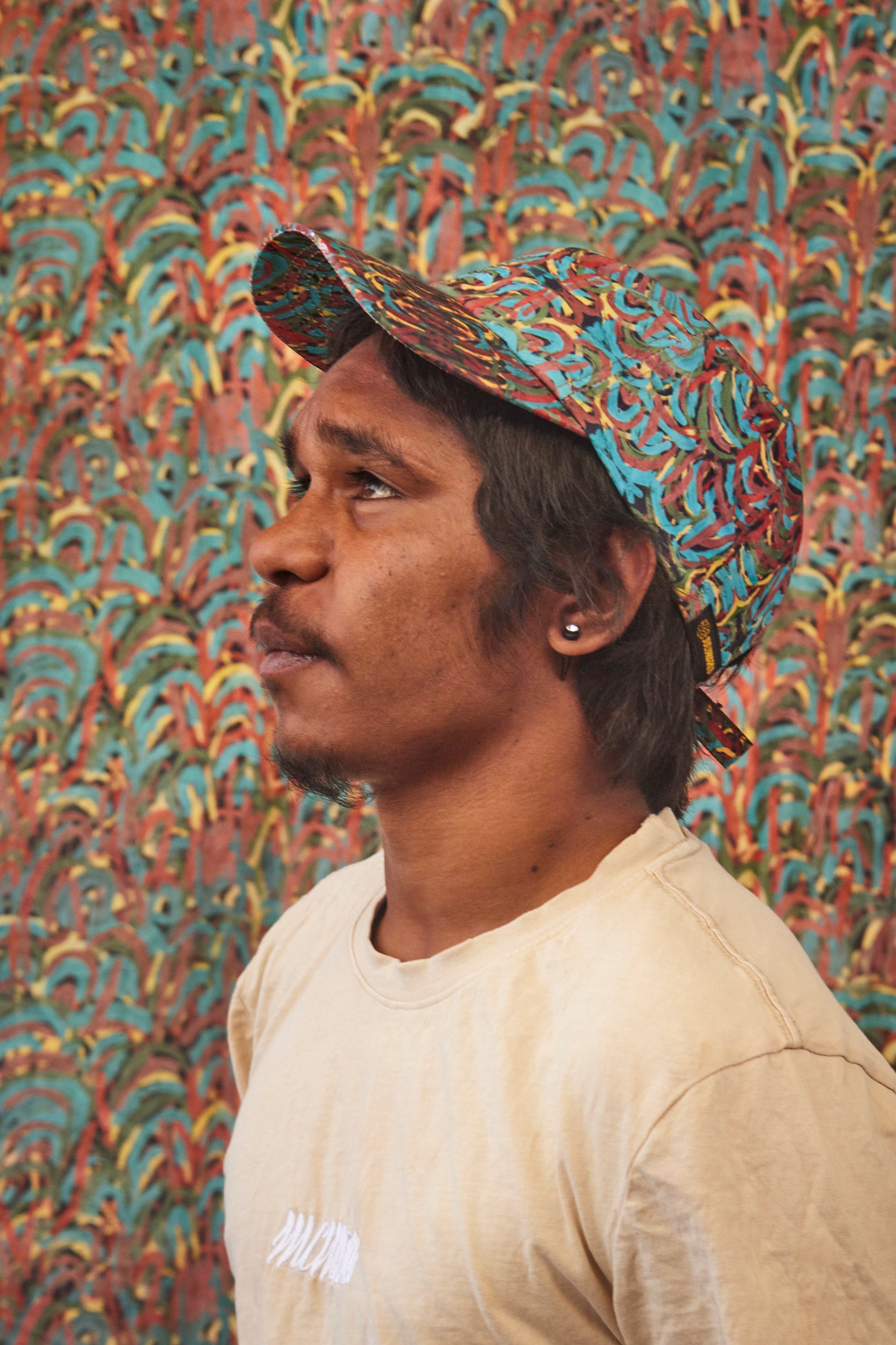 Landon is a young Ngarluma Yindjibarndi man, living and working on Ngarluma Country. He is an emerging artist who started painting by sitting and yarning with his nana, learning about his country and culture. He has also started learning traditional carving from Juluwarlu artist and elder, Wayne Stevens.