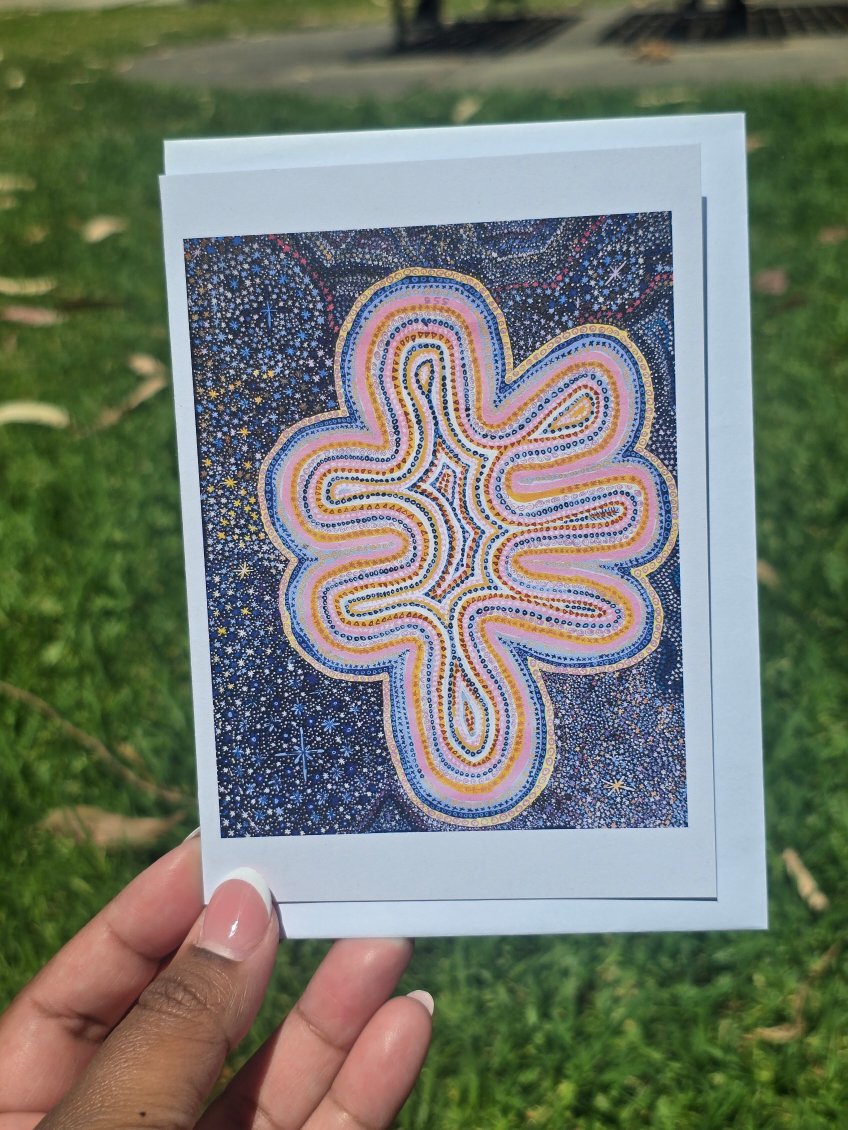 Beautiful gift cards featuring original Juluwarlu artworks. Each card is blank inside for your personal message and comes with a matching envelope, presented in protective packaging.
